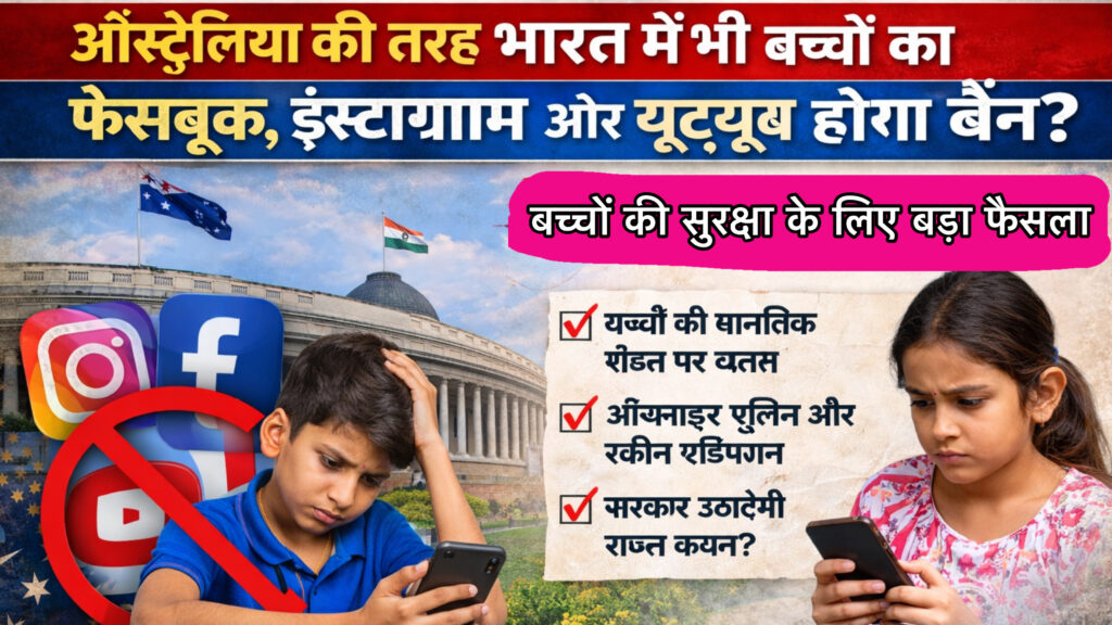 ऑस्ट्रेलिया के बाद अब भारत में भी बच्चों के सोशल मीडिया उपयोग को लेकर बड़ी बहस शुरू हो गई है। फेसबुक, इंस्टाग्राम और यूट्यूब जैसे प्लेटफॉर्म बच्चों की मानसिक सेहत पर गहरा असर डाल रहे हैं। इसी को देखते हुए भारत सरकार भी कड़े नियम या संभावित बैन की दिशा में विचार कर रही है।
