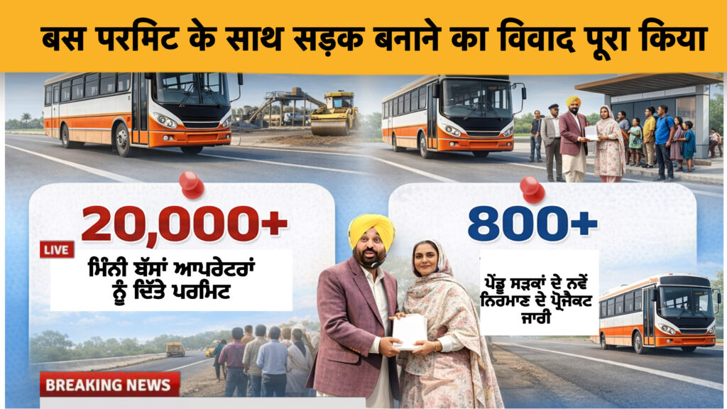 पंजाब में बुनियादी ढांचे और परिवहन व्यवस्था को मजबूत करने की दिशा में मुख्यमंत्री भगवंत मान की सरकार ने एक बड़ा और ऐतिहासिक कदम उठाया है। राज्य के ग्रामीण इलाकों को मुख्यधारा से जोड़ने के लिए करीब 19,000 किलोमीटर सड़कों का निर्माण और सुधार कार्य किया गया है। इसके साथ ही रोजगार और परिवहन सुविधा को बढ़ावा देने के लिए निजी बस ऑपरेटरों को सैकड़ों नए परमिट भी जारी किए गए हैं।