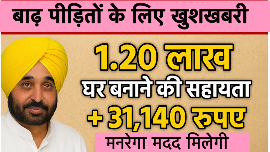 पंजाब सरकार का बड़ा ऐलान बाढ़ पीड़ित परिवारों को फिर से बसाने के लिए 1.20 लाख रुपये और 90 दिनों की MNREGA सहायता