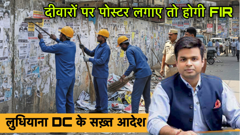 पंजाब के औद्योगिक शहर लुधियाना में अब मनमाने तरीके से दीवारों पर पोस्टर और बैनर लगाना आसान नहीं रहेगा। शहर की खूबसूरती और स्वच्छता को बनाए रखने के लिए डिप्टी कमिश्नर (DC) हिमांशु जैन ने कड़ा रुख अपनाते हुए साफ निर्देश जारी कर दिए हैं। नए आदेशों के तहत दीवारों, पुलों और सार्वजनिक स्थानों पर पोस्टर या बैनर लगाने पर सीधे FIR दर्ज की जाएगी। पोस्टर और बैनर लगाकर शहर की सुंदरता को नुकसान पहुँचाया जा रहा है, इसे किसी भी कीमत पर बर्दाश्त नहीं किया जाएगा।