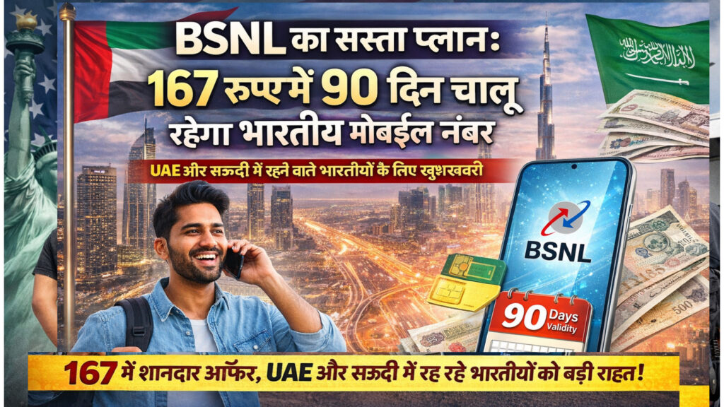 BSNL 167 Plan: UAE और सऊदी में रहने वाले भारतीयों के लिए 90 दिन की बड़ी राहत , 167 रुपये में 90 दिन चालू रहेगा भारतीय मोबाइल नंबर