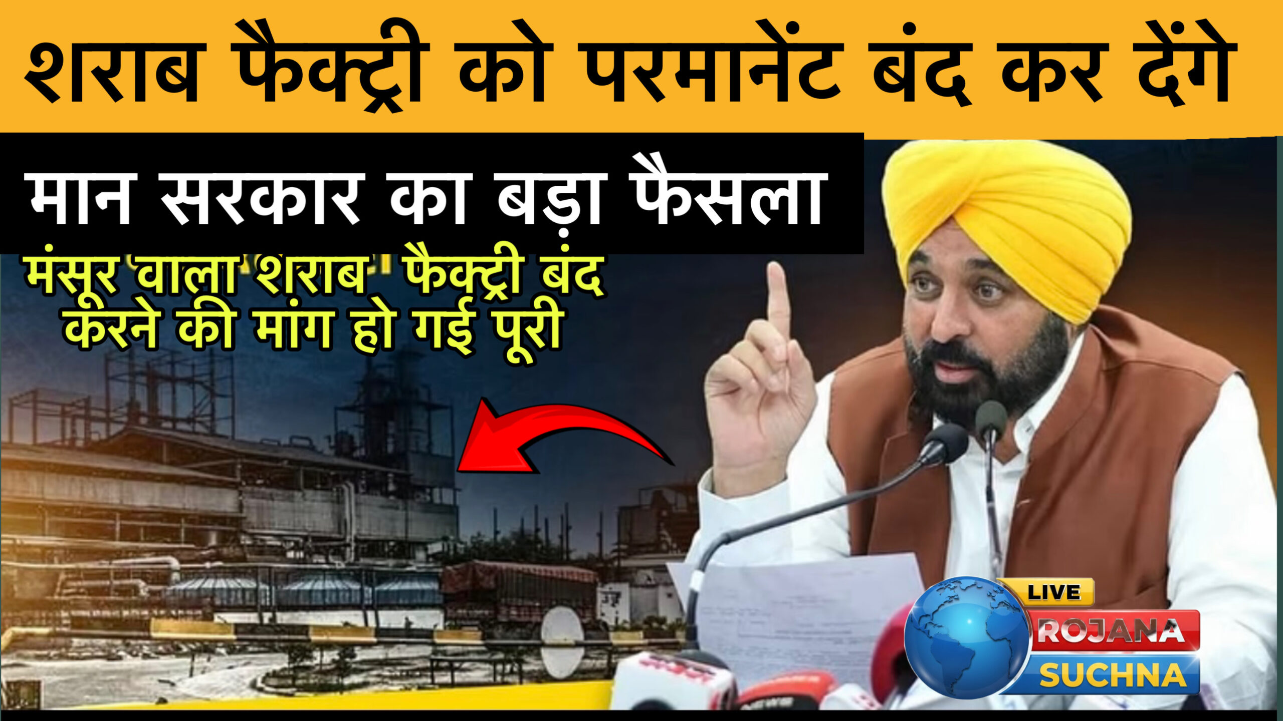 पंजाब में एक लंबे समय से चल रही मांग आखिरकार पूरी हो गई है। मुख्यमंत्री भगवंत मान की सरकार ने गांव मंसूर वाला में बनी शराब फैक्ट्री को बंद करने का बड़ा फैसला लिया है। इस फैसले से गांव के लोगों में खुशी की लहर दौड़ गई है, क्योंकि यह मामला कई महीनों से विवादों और विरोध प्रदर्शनों के कारण सुर्खियों में था। शराब फैक्ट्री से गांव की नवी पीढ़ी युवा पीढ़ी खराब हो रही थी। दिन-रात दारू से लटपट कामछोड़कर बहुत बेकार बैठ रही थी। इसलिए गांव वालों ने आवाज उठाई उसको बंद करने का फैसला लिया।