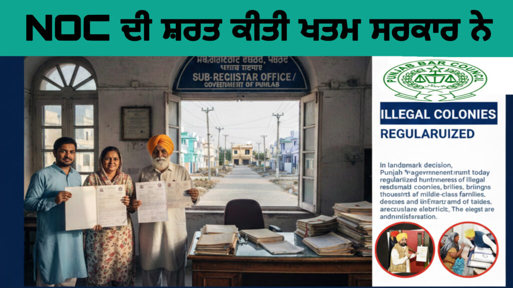 पंजाब सरकार ने आम जनता को बड़ी राहत देते हुए एक ऐतिहासिक निर्णय लिया है। अब राज्य की अवैध कॉलोनियों में स्थित प्लॉट और मकानों का रजिस्ट्रेशन बिना NOC (नो ऑब्जेक्शन सर्टिफिकेट) के कराया जा सकेगा। यह फैसला उन लाखों लोगों के लिए उम्मीद की किरण बनकर आया है, जो वर्षों से कानूनी प्रक्रिया और सरकारी अड़चनों के कारण परेशान थे।