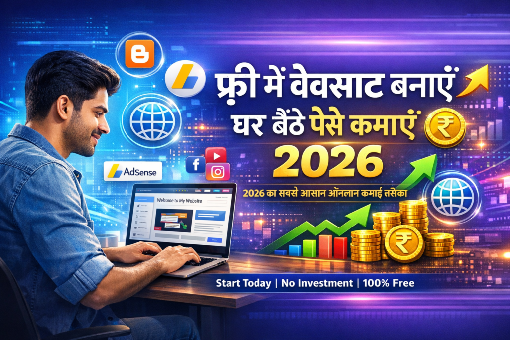 फ्री में वेबसाइट कैसे बनाएं (2026) – बिना पैसे खर्च किए ऑनलाइन कमाई की शुरुआत