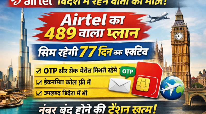Airtel เค•เคพ 489 เคฐเฅเคชเคฏเฅ‡ เคตเคพเคฒเคพ เคชเฅเคฒเคพเคจ: 77 เคฆเคฟเคจ เคคเค• เคธเคฟเคฎ เคเค•เฅเคŸเคฟเคต, เคตเคฟเคฆเฅ‡เคถ เคฎเฅ‡เค‚ เคฐเคนเคจเฅ‡ เคตเคพเคฒเฅ‹เค‚ เค•เฅ‡ เคฒเคฟเค เคฌเฅ‡เคธเฅเคŸ