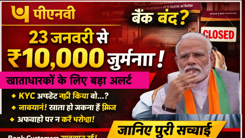 पंजाब नेशनल बैंक (PNB) से जुड़े करोड़ों खाताधारकों के लिए एक बड़ी खबर सामने आ रही है। सोशल मीडिया और कई प्लेटफॉर्म पर यह दावा किया जा रहा है कि 23 जनवरी से PNB खातों पर ₹10,000 तक का जुर्माना लगाया जा सकता है, जिससे ग्राहकों में भ्रम और चिंता का माहौल है। ऐसे में सवाल उठता है – क्या वाकई PNB बंद हो रहा है? और क्या यह जुर्माना सच है?