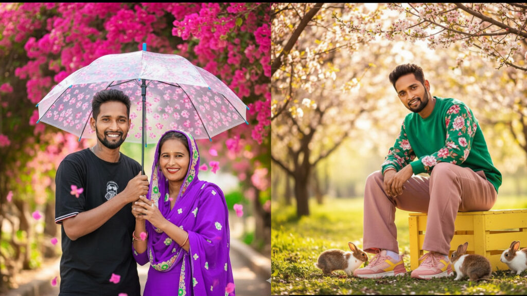 google gemini couple photoediting google gemini couple photo editing A joyful young boy and girl standing outdoors holding a transparent umbrella decorated with pink flowers, with vibrant bougainvillea blossoms falling all around her. both of them should not change their clothes. She is brightly, chetas The background is filled with lush pink flowering trees, creating […]